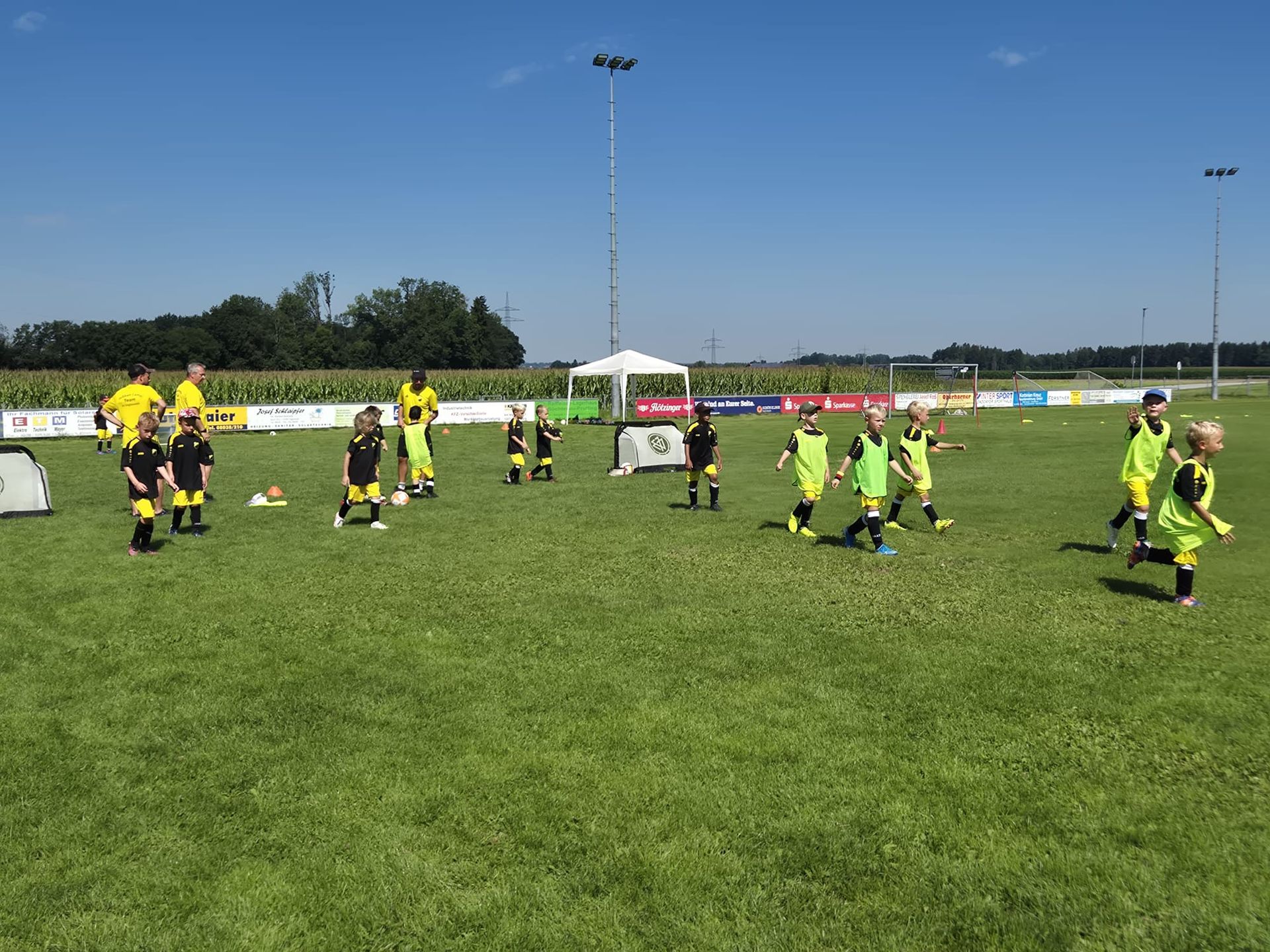 Bereits am ersten Tag gab es strahlende Gesichter: Alle Kinder erhielten eine komplette Trainingsausstattung mit Hose, Shirt, Stutzen, einen Ball sowie einen Turnsackerl – gesponsert vom Verein. Damit starteten sie bestens gerüstet in die Trainingseinheiten unter idealen Wetterbedingungen.