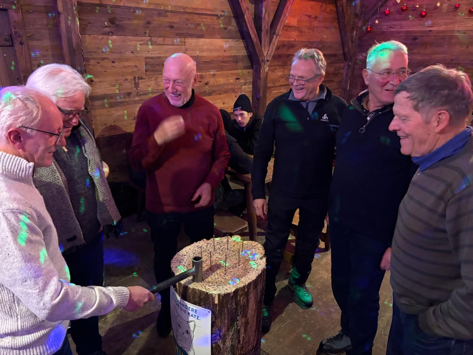 Nach einer Stärkung in der Laterndlalm wurde dann auch noch versucht Nägel in einen Baumstamm zu treiben, was mit zwei zusammengeschweißten Rohrstücken als Hammer gar nicht so einfach ist. Aber auch das gelang letztendlich allen, so dass es wieder ein gelungener Ausflug war.