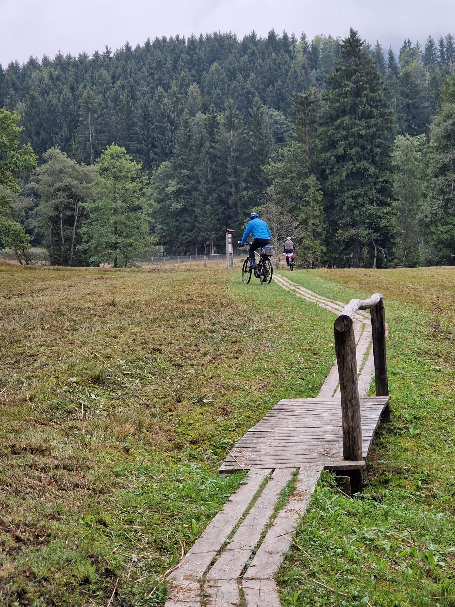 Bei kleinen Zwischenstopps konnten wir die Aussicht ins schöne Inntal geniessen. Die nächsten Abschnitte gings dann nicht mehr sehr steil weiter. Mit viel Geschicklichkeit meisterten wir die gewählte Abkürzung über den nassen Filzenpfad und erreichten das Ziel in Grainbach.